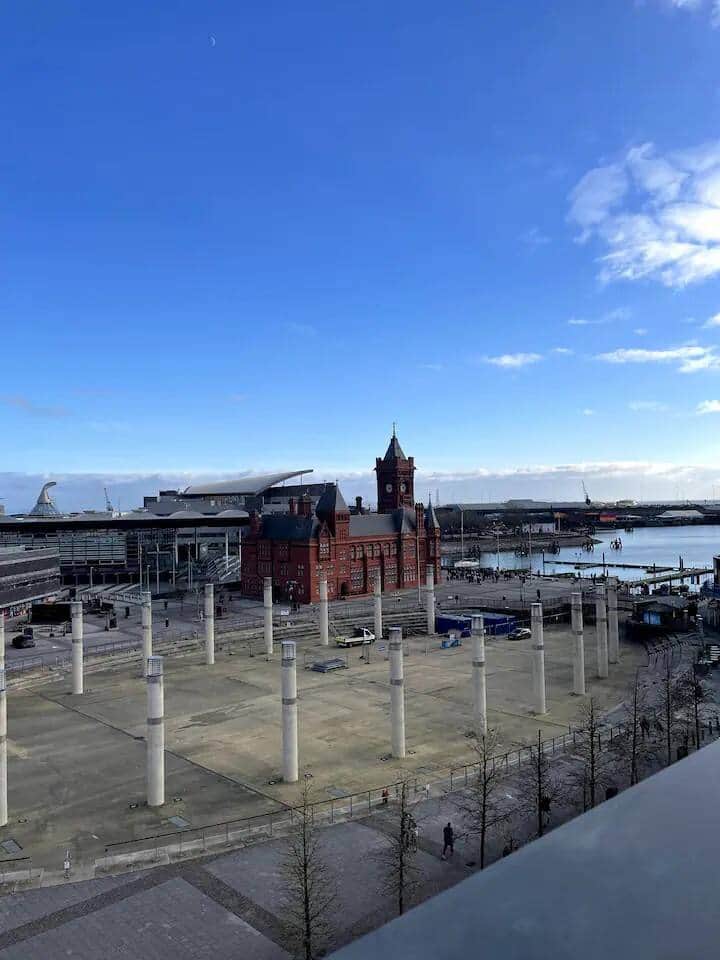 From this 5th floor two bedroom Penthouse Apartment you will get 180 degree across Cardiff Bay from two Balconies. (Building has an elevator)